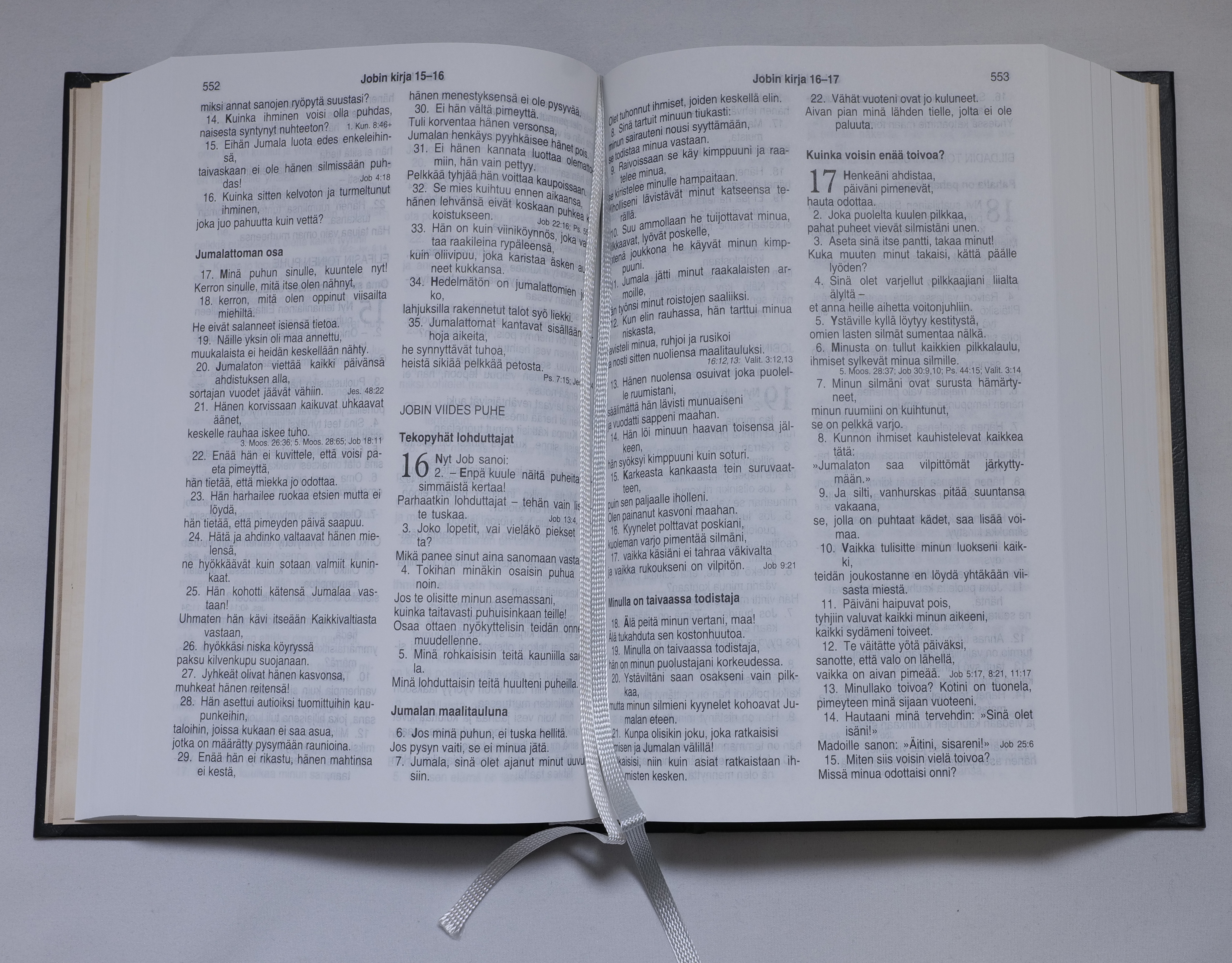 1992 translation, with maps, bible guide, glossary, time line, special pages, ribbon page marker. In two columns.
