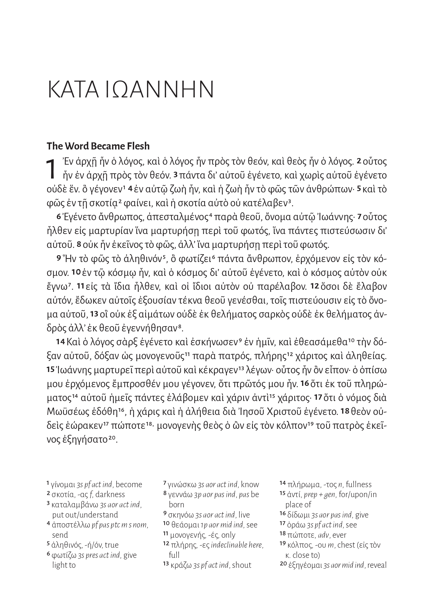 - Footnotes on each page with English translations of all words that occur 30 times or less in the Greek New Testament